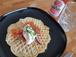When I grew up, my mother used to make waffles quite a bit. With her visiting for a whole week, I decided to invest in a waffle iron for some childhood nostalgia, although slightly updated with smoked salmon, smetana and chives.