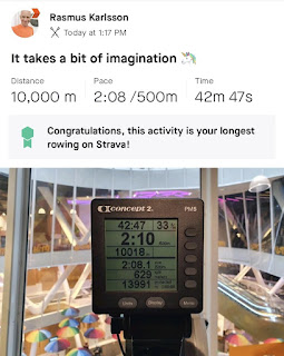 In his 2009 inaugural address, Barack Obama, when referring to previous generations who built America, said that they “worked till their hands were raw”. After completing 10k of indoor rowing at USM today, my hands somehow reminded me of that quote. Like last time, it took quite a bit of imagination and perseverance to not give up halfway through. Still, I guess part of it is simply that I am unused to real physical work, spending most of my days in front of the computer or taking care of the kids.